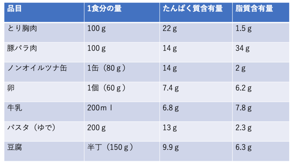 肉や魚、卵、乳製品に含まれているたんぱく質です。